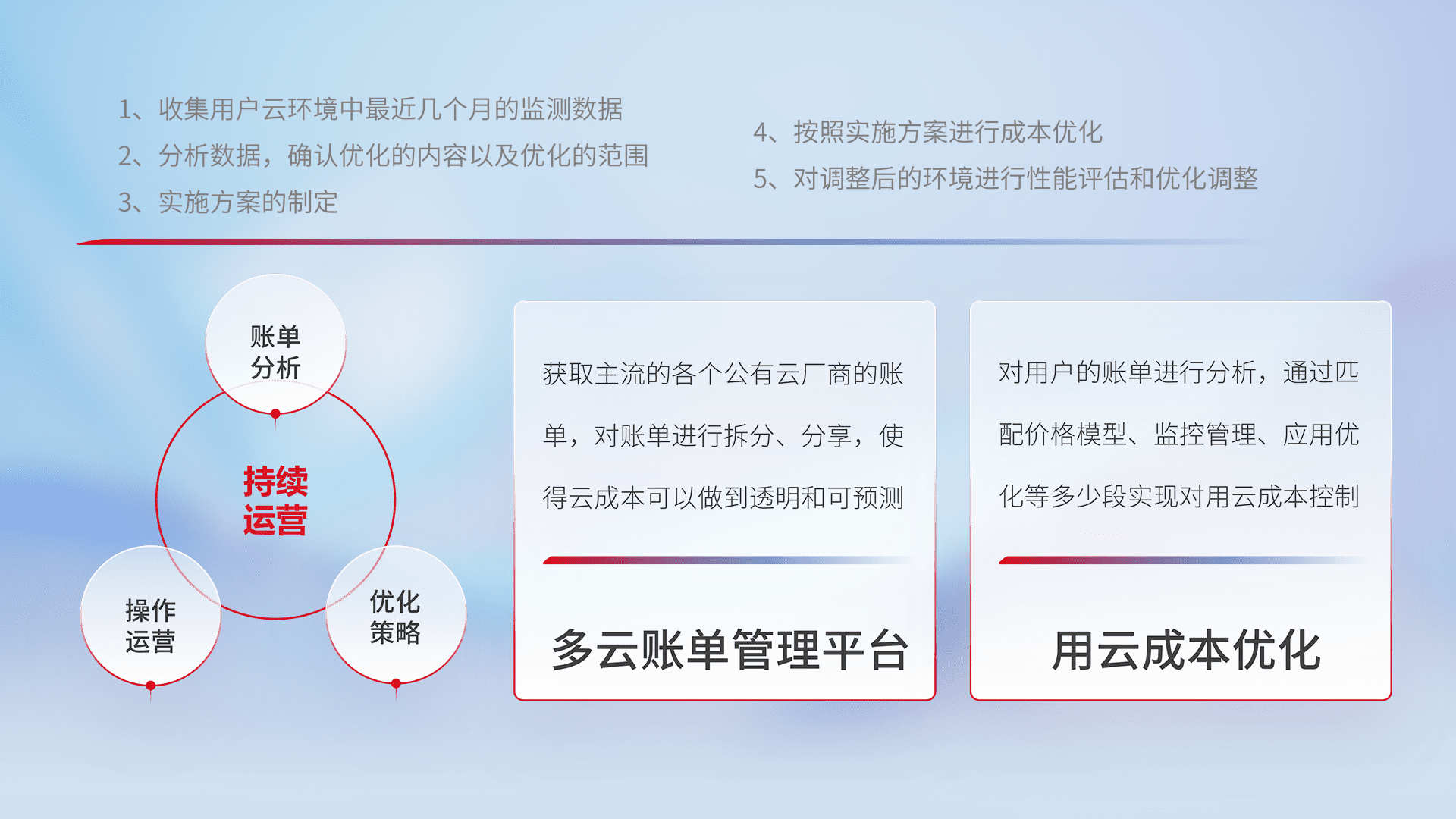 监控业务系统资源开销,,,对资源的消耗精确计量,,实现费用的透明化管理,,,不断提升资源使用率,,,调整资源购买方式,,,,降低资源费用成本,,用云成本可预测、、用云费用可优化,,,云资源配额有据可依。。。